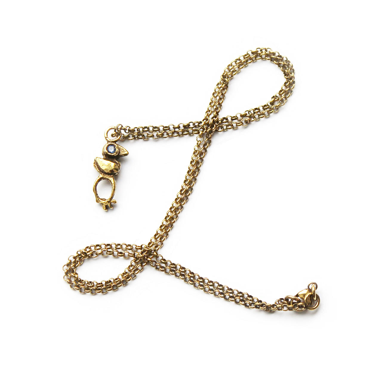 Necklace of a bird. Length of the chain is 40 cm. Gold-plated silver, cubic zircons.