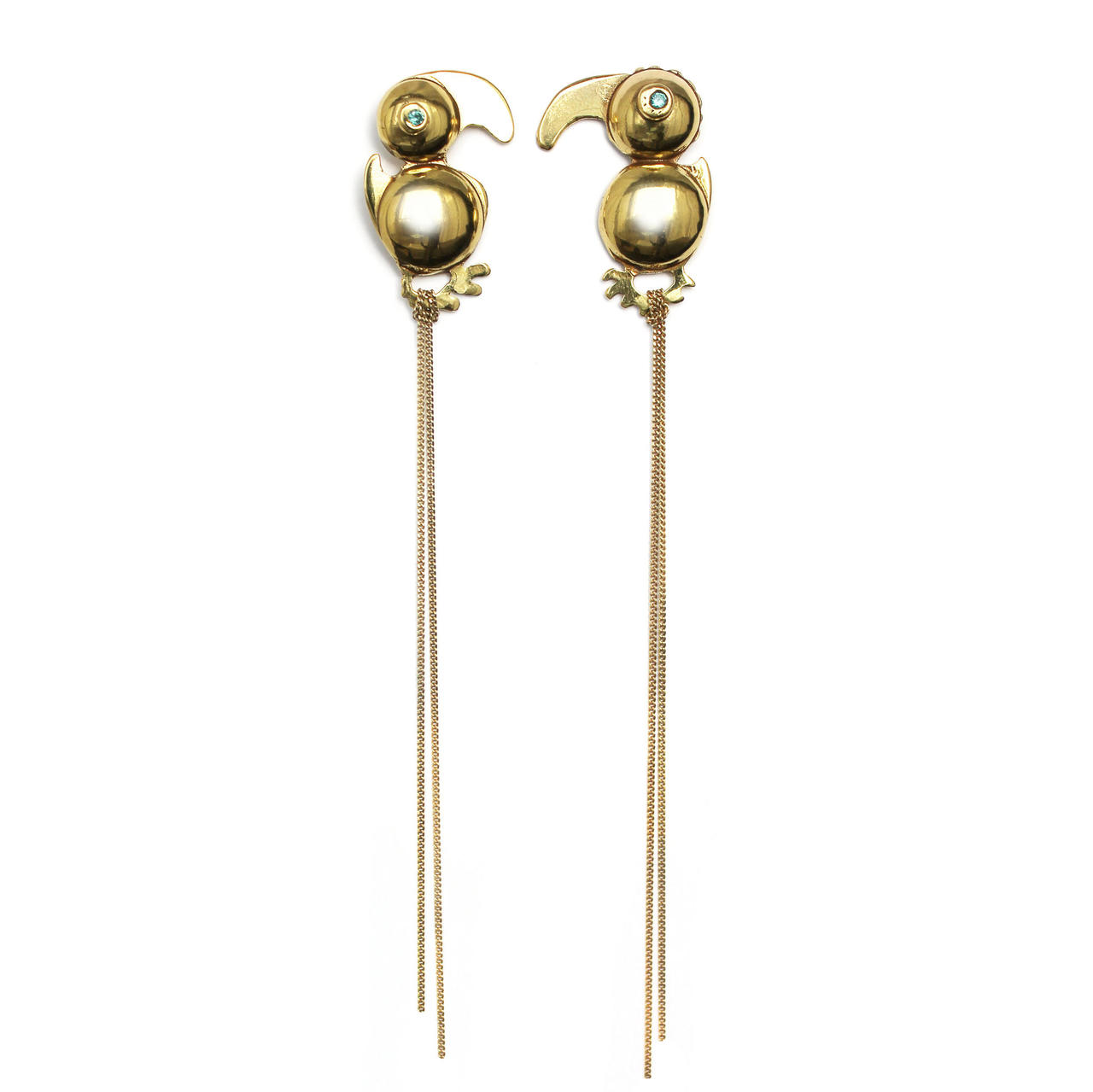 Earrings are with long 2 in 1 chains, it means that the earrings can be worn with the chains or without. Earrings have 2 chains both with the length of 25 cm. They are connected with the earrings with a loose knot, that is easy to take away or to put back.