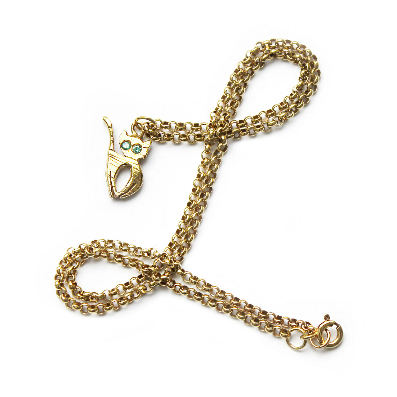 Necklace of a Cat. Length of the chain is 40 cm. Gold-plated silver, cubic zircons.